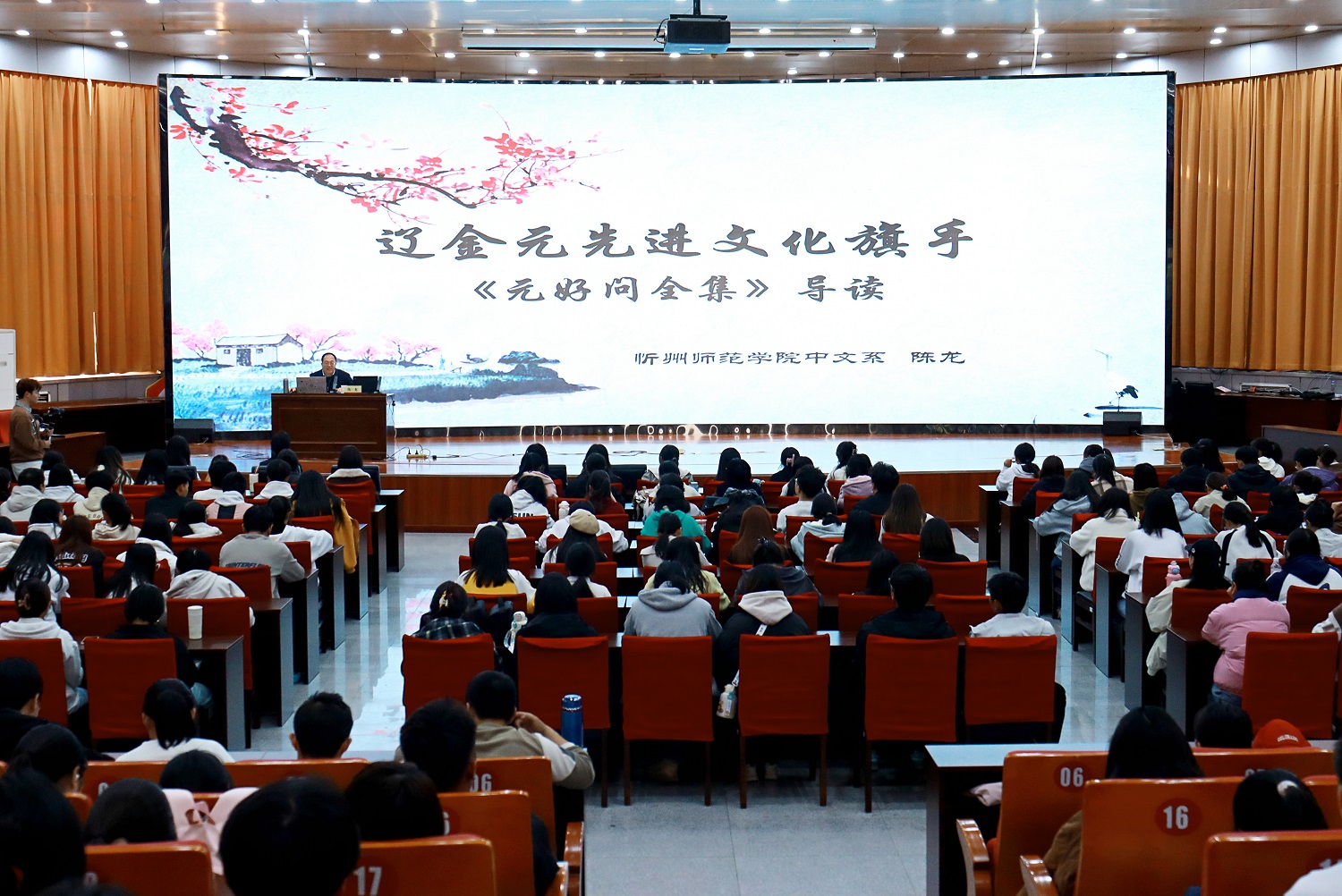 10月24日,由山西省教育厅安排部署,山西师范大学牵头,今年会教务部和校团委组织实施的“典耀中华”主题读书行动经典进校园活动在慎思楼报告厅举办。受活动组委会委托,忻州师范学院中文系主任陈龙副教授作专题报告。今年会400余名师生聆听报告。