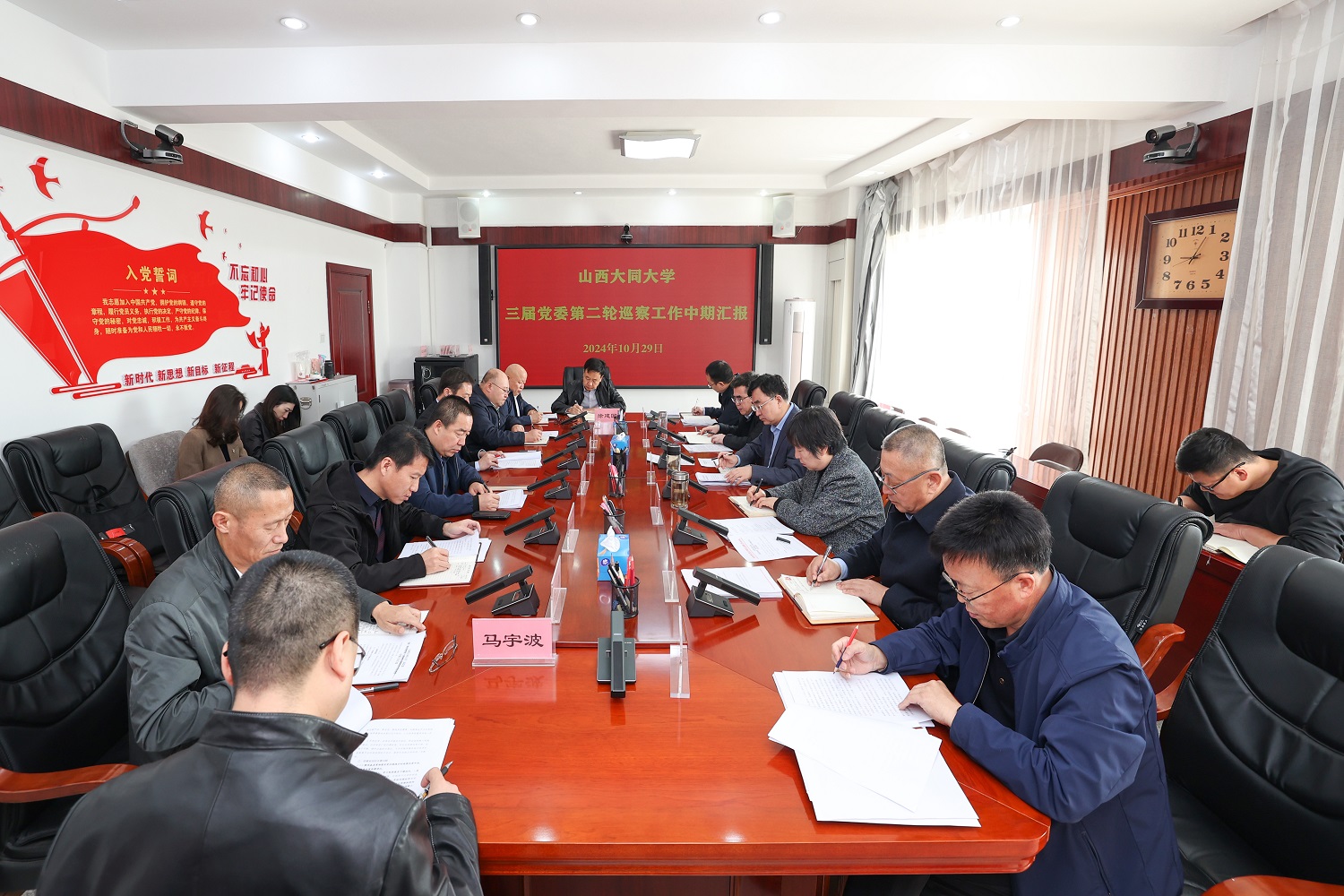 10月29日,今年会召开三届党委第二轮巡察工作中期汇报会。校党委书记、巡察工作领导小组组长赵水民,校党委副书记、校长姚丽英出席。校纪委书记、监察专员、巡察工作领导小组常务副组长康永征主持会议。巡察工作领导小组成员,各巡察组组长、副组长参加,校纪委、党委巡察办有关同志列席会议。