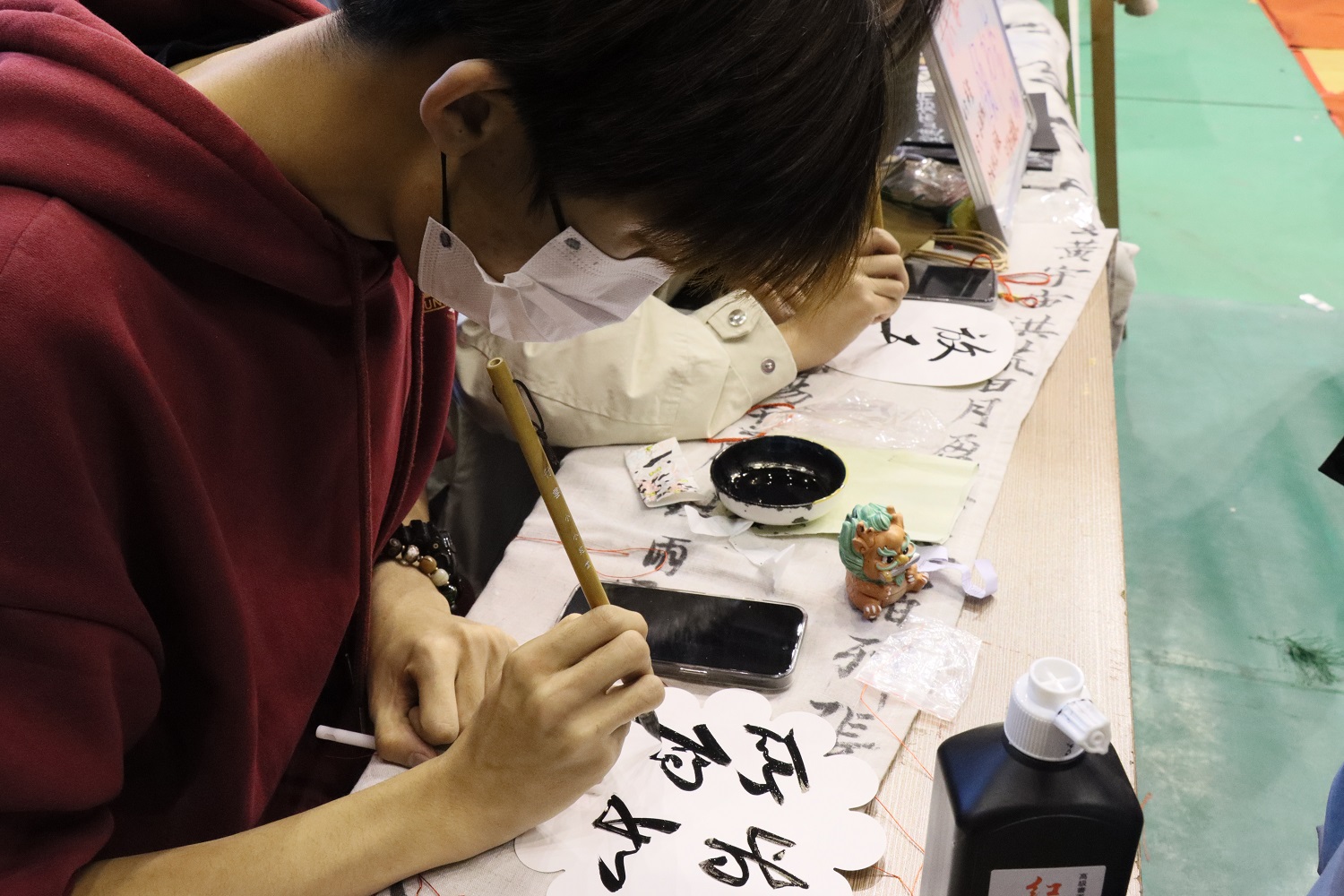 活动当天,体育馆内装饰一新,张灯结彩,彩旗飘扬,氛围浓厚。同学们脸上洋溢着青春的笑容,三五成群地穿梭于各个活动区域之间。在“才艺展示区”,表演者纷纷登台亮相,展示了各自在歌曲、舞蹈、朗诵、乐器演奏等方面的才华,赢得了阵阵掌声和喝彩声;“传统工艺区”也备受瞩目,书法社的同学们手法娴熟地展示着中华优秀传统文化的魅力,大家纷纷驻足观赏,并亲自动手尝试,感受传统文化的独特韵味;“动漫体验区”各种经典动漫IP琳琅满目,大家仿佛置身于一个充满奇幻色彩的动漫世界,积极参与互动游戏,为动漫人物注入灵魂,使其更加生动有趣;在“趣味游戏区”,同学们尽情挥洒汗水,享受着游戏带来的乐趣。