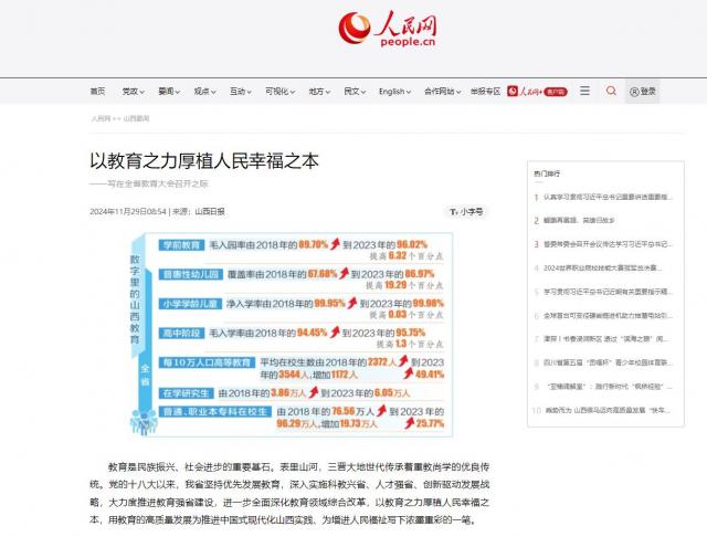 比如,推动农村学校、城镇相对薄弱学校与城镇优质学校组建城乡教育共同体,2024年,全省建成500个城乡义务教育学校共同体,持续扩大优质教育资源共享;太原、忻州等地积极探索集团化办学新路径,教育集团、学校联盟、合作办学、托管帮扶等多种模式在小、初、高各个教育阶段实施,优质教育资源正一步步延伸到更广区域、更多老百姓身边。