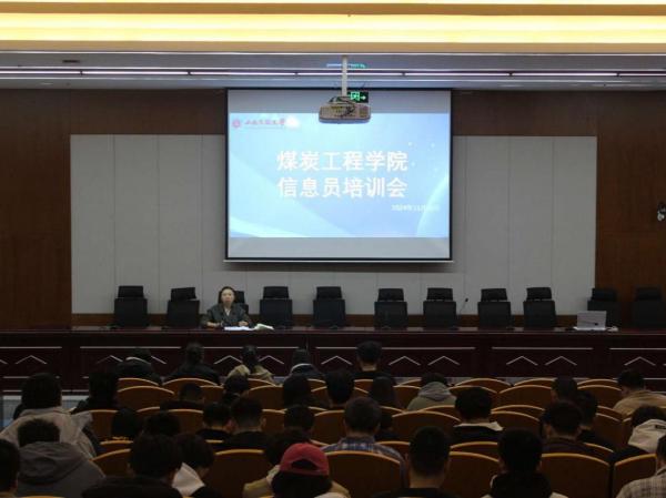 为进一步明确信息员的工作职责,提升信息员问题摸排、风险研判、应急处置等综合能力,充分发挥信息员在学院日常管理中的积极作用,煤炭工程学院于11月22日在新平旺校区图书馆报告厅举行2024年信息员培训,学院党委书记张蕾参加会议,学院全体信息员参加了本次培训。学院团委书记董宇婕主持。