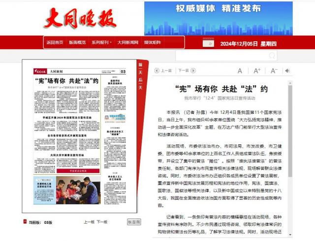 记者看到,一条条印有普法内容的横幅悬挂在活动现场,各种宣传资料有序陈列。不少市民通过现场咨询、领取印有法律常识的购物袋和普法台历等礼品,了解学习法律法规。同时,活动现场还设置融合宪法相关知识的景观造型和“守护法治灵魂共绘‘宪’政蓝图”签名墙,吸引了许多群众驻足围观、打卡合影。