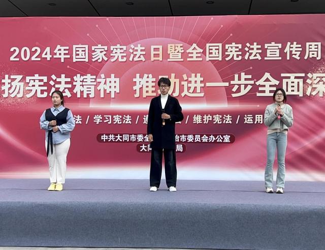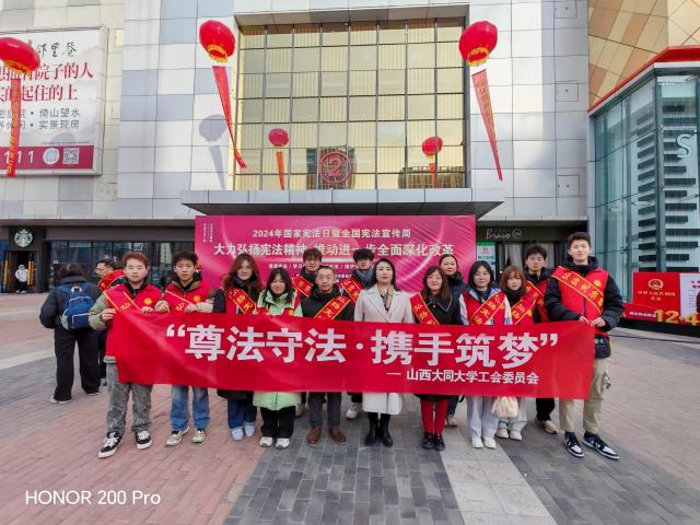 为深入贯彻落实习近平法治思想,大力弘扬宪法精神,12月4日,学校工会与法学院携手中共大同市委全面依法治市委员会,在万达广场举办“12.4”国家宪法日及宪法宣传周活动,以“大力弘扬宪法精神,推动全面深化改革”为主题,共筑法治梦想。此次活动吸引了全市45余家单位积极参与。