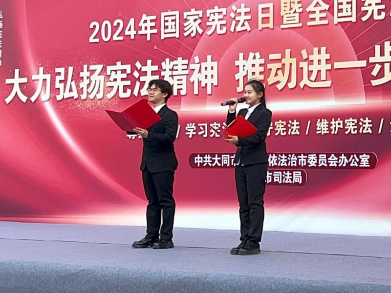 今年12月4日是我国第十一个“国家宪法日”,12月1日至7日是第七个“宪法宣传周”,今年“宪法宣传周”主题为“大力弘扬宪法精神,推动进一步全面深化改革”。学校积极响应、统筹安排,由法学院牵头,与大同市人大常委会、大同市法学会通力合作,开展“宪法宣传周”普法系列活动,将宪法晨读、主题班会、法律咨询、法治小游戏、模拟法庭、普法问卷调查、普法课堂、法治元素节目表演等融入其中,以接地气的形式进行普法宣传。