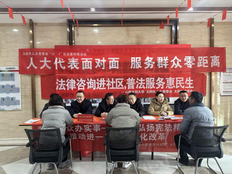 jinnianhui今年会、大同市人大常委会和大同市法学会走进文兴社区,为居民开展普法宣传与法律咨询活动。用通俗易懂的方式为居民讲解宪法知识,推动宪法文化扎根居民心中,融入居民日常生活。此外,大同市人大常委会邀请市人大代表与社区群众面对面交流,充分发挥人大代表为人民、人大代表服务人民的作用,为社区发展贡献智慧和力量,共同推动社区和谐稳定与繁荣发展。
