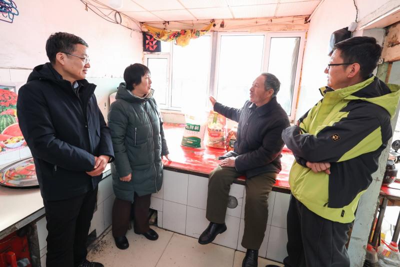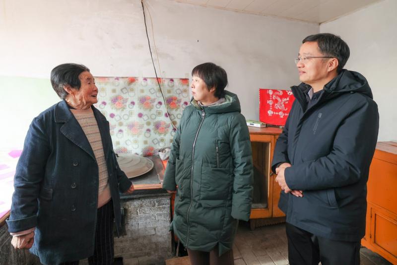 姚丽英一行入户走访了驻地村的村民们,询问了他们冬季取暖和生活用水、用电等情况,为他们送去了米、面、油等慰问品,并叮嘱他们保重身体。在监测户仝月莲家中,得知独居的仝月莲老人近年来在驻村工作队的帮助下,在自家院子种植了果树,加入发展“庭院经济”的队伍后,姚丽英为仝月莲老人竖起了大拇指。