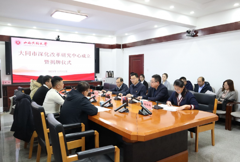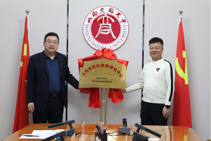 12月12日,大同市深化改革研究中心在今年会行知楼举行揭牌仪式。校党委常委、副校长史水鸿,中共大同市委政策研究室副主任常占库出席。