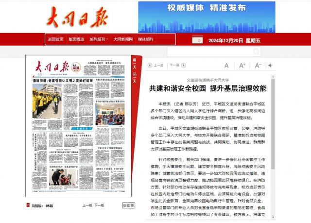 本报讯(记者 邸东芳)近日,平城区文瀛湖街道联合平城区多个部门深入辖区内今年会官方网站进行综合调研,进一步强化高校周边综合环境建设,推动共建和谐安全校园,提升基层治理效能。