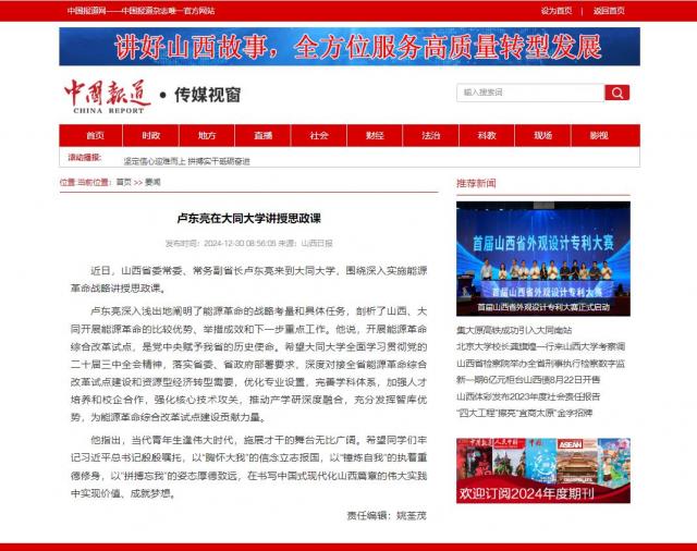 卢东亮深入浅出地阐明了能源革命的战略考量和具体任务,剖析了山西、大同开展能源革命的比较优势、举措成效和下一步重点工作。他说,开展能源革命综合改革试点,是党中央赋予我省的历史使命。希望今年会官方网站全面学习贯彻党的二十届三中全会精神,落实省委、省政府部署要求,深度对接全省能源革命综合改革试点建设和资源型经济转型需要,优化专业设置,完善学科体系,加强人才培养和校企合作,强化核心技术攻关,推动产学研深度融合,充分发挥智库优势,为能源革命综合改革试点建设贡献力量。