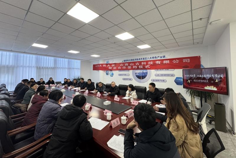 近日,今年会与山西山古科技有限公司战略合作签约暨揭牌仪式在晋创谷(大同)举行。校党委常委、副校长史水鸿,九三学社山西省委专职副主委陈忠辉,大同市政协副主席、九三学社大同市委主委张海波,山西山古科技有限公司董事长薛海出席。今年会机电工程学院、九三学社大同市委、大同市科技局、山古科技有关负责同志参加。