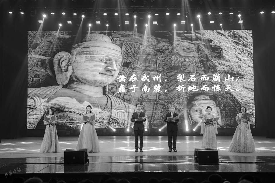 首篇“云冈神韵”中,舞蹈《云冈六臂神舞》以灵动飘逸的姿态演绎出古朴庄严的艺术之美。进入“同大风采”篇章,《杏坛雅步走春秋》展现教师队伍的高雅气质与精神风貌,《金狮送福》以刚劲有力的武术表演寄寓吉祥如意的美好祝愿。尾声“时代新声”篇章,朗诵《月光下的中国》以诗一般的语言勾勒出祖国山川湖海的壮丽画卷。(赵鑫)