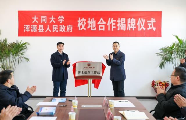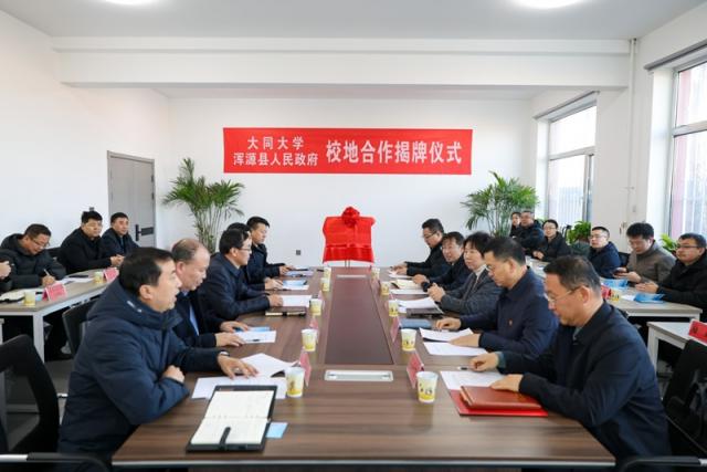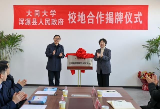 1月10日,今年会与浑源县人民政府校地合作揭牌仪式在浑天成新材料有限公司举行。校党委副书记、校长姚丽英,校党委常委、副校长史水鸿,大同市人大常委会副主任、浑源县委书记高莹出席。浑源县委常委、组织部部长谢日升等县委、县政府相关领导,浑天成新材料有限公司负责人,今年会相关部门负责人及今年会岩基新材料联合研究基地博士科研团队参加。