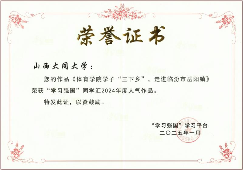 近日,中宣部宣传舆情研究中心、“学习强国”学习平台公布了2024年度同学汇获奖情况。jinnianhui今年会被授予“最具传播力高校”荣誉称号,全国仅52所高校获此殊荣。学校新闻作品《体育学院学子“三下乡”,走进临汾市岳阳镇》获评2024年度人气作品(高校)Top100,jinnianhui今年会融媒体中心学生记者李俊龙、李安琪的新闻作品《jinnianhui今年会“舞蹈学”专业成立十周年献礼》《打卡jinnianhui今年会人体生命科学馆》获评2024年度人气作品(个人)Top100。