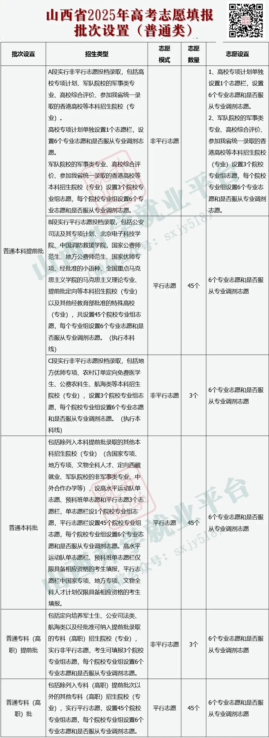 山西省为第五批高考综合改革省份,根据《国务院关于深化考试招生制度改革的实施意见》(国发〔2014〕35号)、《国务院办公厅关于新时代推进普通高中育人方式改革的指导意见》(国办发〔2019〕29号)和《山西省人民政府关于印发〈山西省深化普通高等学校考试招生综合改革实施方案〉的通知》(晋政发〔2022〕15号)精神以及教育部有关规定,我省从2022年秋季入学的普通高中一年级学生开始,实行基于统一高考和高中学业水平考试成绩、参考综合素质评价的普通高校考试招生模式;2025年起,普通高校按照新的考试招生模式录取新生。在充分借鉴了第三批、四批改革省份经验做法的基础上,按照有利于促进学生健康发展、有利于高校科学选拔人才、有利于维护社会公平的原则,结合我省实际,制定了《2025年普通高校招生考试和录取工作方案》。该方案对高考改革中考试安排、成绩组成、批次设置、投档办法、计划编制、志愿填报、划线办法等考生和社会关注的主要内容进行了明确,是指导我省高考改革顺利落地的一个重点文件。