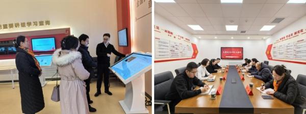 党群服务中心主任陶宏宇、副主任陈天培带领学院一行参观了中心的各个功能区域,详细讲解了中心在党员教育、党群服务、活动开展等方面的工作情况。参观后双方举行了座谈会。