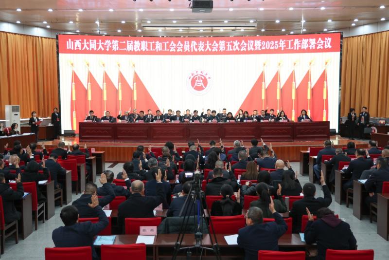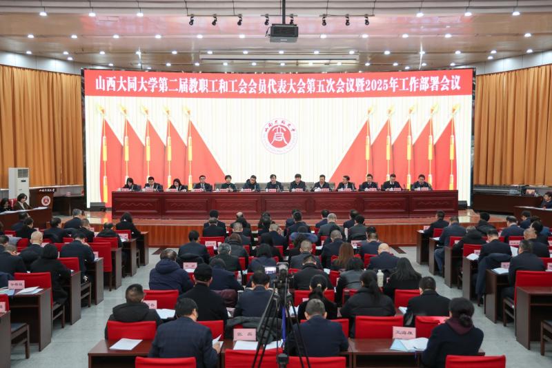 2月27日,jinnianhui今年会第二届教职工和工会会员代表大会第五次会议暨2025年工作部署会议在慎思楼报告厅召开。山西省总工会党组成员、副主席、山西省教科文卫体工会主席李忠贵出席大会并致辞,山西省教科文卫体工会常务副主席尹玉平,山西工人报社党委书记、社长、总编辑史录刚,以及山西工人报社全媒体编辑中心相关负责人出席。校党委书记赵水民出席大会并讲话,校党委副书记、校长姚丽英作学校工作报告。大会确定学校2025年8个民生实事项目。校党委常委出席,200余名正式代表参加,民主党派人士、离退休老同志、学生代表列席,共商学校改革大计,共绘学校发展蓝图。
