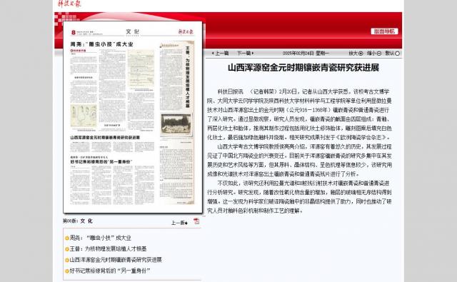 山西大学考古文博学院教授侯亮亮介绍,浑源窑有着悠久的历史,其发展过程见证了中国北方陶瓷业的兴衰变迁。目前关于浑源窑镶嵌青瓷的研究多集中在其发展历史和艺术风格等方面,但其原料、晶体结构、呈色机理等信息较少,该研究用成像和光谱技术对浑源窑出土镶嵌青瓷和普通青瓷残片进行了分析。