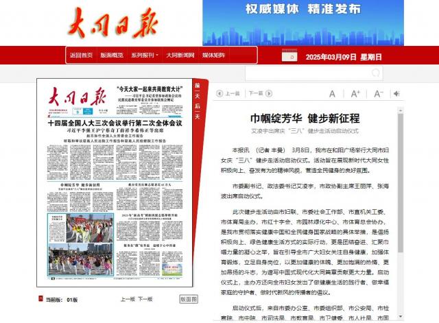 本报讯(记者 丰曼)3月8日,我市在和阳广场举行大同市妇女庆“三八”健步走活动启动仪式。活动旨在展现新时代大同女性积极向上、奋发有为的精神风貌,营造全民健身的良好氛围。