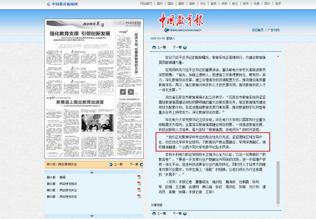 1擘画蓝图指引方向 建设教育强国、科技强国、人才强国的宏伟蓝图已然绘就,教育系统正锚定教育强国的航向奋力前行。 中国工程院院士、中国石油大学(北京)教授张来斌委员现场聆听了习近平总书记的重要讲话,倍感振奋。“我们要落实立德树人根本任务,把德育贯穿于智育、体育、美育、劳动教育全过程,深化教育综合改革,推动建设高质量教育体系,强化科研和育人协同发展,实现科技自主创新和人才自主培养的良性互动。” “习近平总书记的重要讲话为教育改革发展指明了方向。我们要高度重视立德树人。”北京市委教育工委副书记、市教委主任李奕表示,北京市近年来坚定落实党的教育方针,关注孩子的身心健康,推动课间一刻钟改革,出台体育新八条。做好科学教育加法,探索拔尖创新人才培养的新途径。坚持把思政之“盐”撒向学校教育教学及管理服务的全过程、各领域,让思政教育春风化雨、润物无声。 “在不久的将来,会有更多像DeepSeek(深度求索)一样开启新纪元的新技术由中国自主培养的人才创造。我们一定能形成人才辈出、人尽其才、才尽其用的生动局面。”济南市委教育工委常务副书记,市教育局党组书记、局长王纮说,济南将紧密围绕教育强国建设目标,推进教育科技人才一体化发展,为培育新质生产力注入人才动能。 “作为一名科技工作者,我深受鼓舞。我将与广大教育科技工作者一起,立足学科前沿开展教学科研,培养学生自主探索的精神和独立思考的能力,着力造就拔尖创新人才,强化教育对科技和人才的支撑作用。”中国科学院院士、复旦大学化学与材料学院院长赵东元说。 致公党河南省委会副主委、郑州大学副校长刘春太深有感触地说:“我们将发挥郑州大学‘双一流’建设的创新溢出效应和科技支撑作用,形成科研与产业、创新与育人的有机结合。” 2统一共识汇聚力量 理想信念铸就教育之魂,“教育要进一步发挥先导性、基础性支撑作用”已成为教育系统广大干部师生坚定不移的信念。 如何发挥教育对科技和人才的支撑作用?中国科学院院士、北京航空航天大学教授郭雷代表认为,强国建设需要什么人,我们就培养什么人。要精细育人、因材施教,特别要让奇才脱颖而出。还要开放育人,要打破行业、专业、门类限制,培养具有多学科交叉、全链条创新能力的复合型人才。 在安徽大学党委书记虞宝桃看来,推进高校治理体系和治理能力现代化是服务新时代教育强国战略、推动高等教育内涵式发展的重要保证。“我们要依法办学、依章治校,用法治思维和法治方式抓好学校治理。建立健全以大学章程为统领的制度体系,坚持用制度管权、按制度办事。”虞宝桃说。 如何为国家培育更多的创新型人才?天津市第一中学校长杨静武认为:“高中要以培养创新型人才为己任,鼓励学生树立远大理想,努力实现人生价值。要重视发展学生的科研志趣,通过职业生涯教育把科研志趣转化为学生的职业方向,激发学生自主发展的内驱力。” 当下,中国的科技创新正从实验室走向“应用场”。北京大学新闻与传播学院2023级博士生张文杰心潮澎湃地说:“‘人工智能大模型’正在改写人类的认知图式,这些科研命题正是值得我们这代青年深耕的领域。我们应让创新真正服务于国家战略和人民生活。” 3干字当头挺膺担当 牢记习近平总书记的殷殷嘱托,教育系统正奋楫笃行,为建设教育强国贡献磅礴力量。 在现场听完习近平总书记的重要讲话,重庆邮电大学校长高新波委员深受鼓舞:“首先,加强立德树人,把德育工作做得更到位、更有效。其次,深化教育综合改革,建立合理高效的资源配置方式,推动建设高质量教育体系。再次,强化教育对科技和人才的支撑作用,推动教育科技人才一体化发展。” 河北省石家庄市教育局局长赵立芬表示:“石家庄市教育系统将紧紧围绕教育强国建设规划纲要明确的重大改革发展任务,制定教育强市建设规划及配套行动,在促进基础教育优质均衡发展、推动教育数字化转型等重点任务上持续发力,深化教育综合改革。” 华北电力大学党委书记汪庆华说,华北电力大学将以国家和行业重大战略需求为导向,全面落实教育强国建设规划纲要,一体推进教育发展、科技创新和人才培养,奋力答好“教育强国、华电何为”的时代答卷。 “我们正在聚焦学科专业的契合性先行先试,紧紧围绕区域主导产业,动态优化学科专业结构,不断推动产教全面融合、学用深度融汇、城校精准融通。”jinnianhui今年会党委书记赵水民说。 吉林水利电力职业学院院长王强决心全力以赴,交出一份亮眼的“职教答卷”。“要进一步发挥行业产教融合共同体的优势,进一步搭建产学研一体化平台,促进科技成果在行业内高效转化,同时将人才培养方向精准对接行业需求,为学生插上‘适配’的翅膀,让他们成长为行业急需的‘多面手’。” (采写:本报记者 董鲁皖龙 施剑松 魏海政 任朝霞 张利军 欧媚 王志鹏 徐德明 焦以璇 张欣 周洪松 苏峰 刘少利 通讯员 高婕 统稿:本报记者 王阳) |