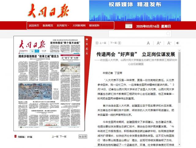 2025年是“十四五”规划收官之年,也是进一步全面深化改革的重要一年。作为人大代表,赵建国表示,将全面宣传落实全国两会精神,聚焦国家战略需求和行业发展前沿,依托重点实验室,围绕盐碱地治理、沙漠化土地绿化、矿山生态修复等方向,通过技术创新提高植物在困难条件下的成活率,进一步提升生态碳汇能力;整合山西本土科研基础,筹建生态碳汇国家重点实验室,助力山西实现由“煤老大”向“能源革命排头兵”的转变,推动生态碳汇技术高质量发展;聚焦煤基高附加值材料制备、生态固碳增汇技术及可降解材料研发,为实现碳减排目标和推动绿色发展贡献力量;创新人才培养模式,培养更多生态碳汇领域的专业人才,为实现“双碳”目标提供智力支持。