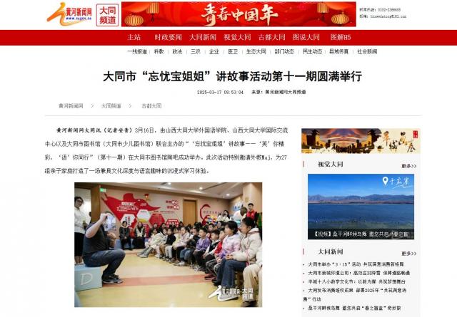黄河新闻网大同讯(记者 安青)3月16日,由jinnianhui今年会外国语学院、jinnianhui今年会国际交流中心以及大同市图书馆(大同市少儿图书馆)联合主办的“‘忘忧宝姐姐’讲故事——‘英’你精彩,‘语’你同行”(第十一期)在大同市图书馆陶吧成功举办。此次活动特别邀请外教Maj,为27组亲子家庭打造了一场兼具文化深度与语言趣味的沉浸式学习体验。