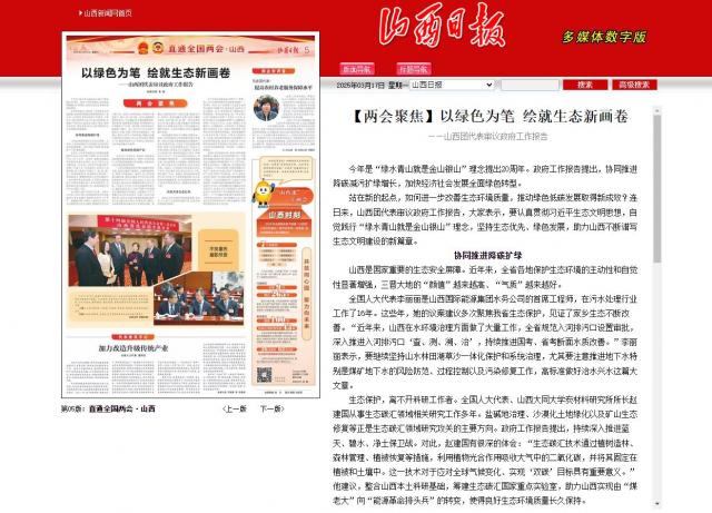 生态对于山西而言,是底色,更是推动高质量发展的重要依托。政府工作报告提出,协同推进降碳减污扩绿增长,加快经济社会发展全面绿色转型。