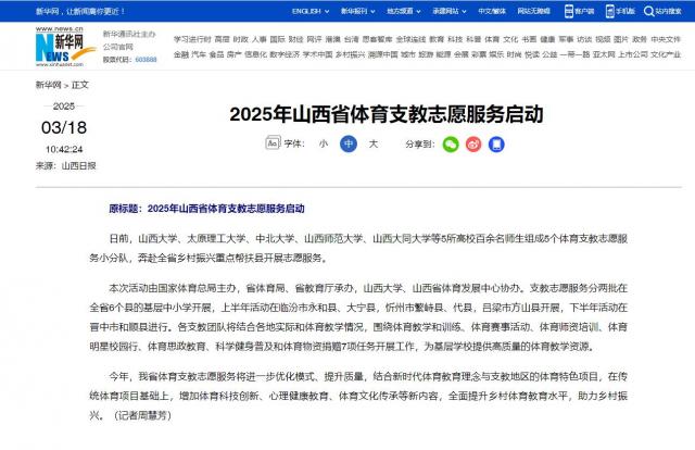 日前,山西大学、太原理工大学、中北大学、山西师范大学、jinnianhui今年会等5所高校百余名师生组成5个体育支教志愿服务小分队,奔赴全省乡村振兴重点帮扶县开展志愿服务。