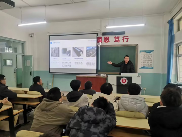 学院邀请山西省特种石墨应用技术创新中心副主任、大同新成新材料股份有限公司技术副总经理刘伟凯以《特种碳材料发展前沿》为题为师生带来了一场精彩的专题讲座,为系列活动首场讲座正式拉开帷幕。刘伟凯结合企业技术攻坚历程,全面梳理了特种碳材料在航天航空、新能源电池、半导体等战略性新兴产业中的关键应用。重点剖析了特种石墨研发的典型案例,借助详实的数据图表与直观的视频演示,生动展现了前沿技术对未来产业的变革性影响,让在场师生对特种碳材料的发展有了更为直观和深刻的认识。互动环节中,刘主任就特种石墨企业转型升级路径、行业市场发展动态等热点问题与师生进行了深入交流。现场的同学们踊跃提问,积极与专家互动。讲座结束后,同学们表示:“通过企业专家对产业链条的全面解读,对书本知识如何转化到产业实际工作中有了更清晰的认知,也更加坚定了投身碳材料领域的信心。”
