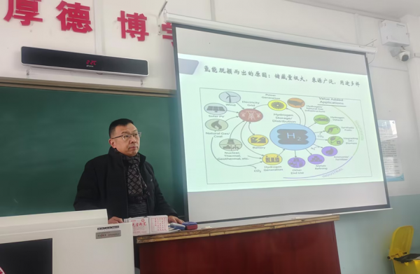 大同新研氢能科技有限公司生产副总沙庆龙应邀围绕《氢能源与未来》主题,为师生带来了一场前沿与实践并重的学术报告。沙庆龙立足全球能源变革的宏观视角,深入剖析了氢能产业发展现状与趋势,系统梳理了氢能产业链各关键环节的技术突破与创新路径。通过分享新研氢能在燃料电池电堆集成等核心领域的创新成果,并探讨了制约氢能源产业发展的两大核心问题——“成本控制”与“规模化应用”。他紧密结合山西省能源革命综合改革试点建设,以大同氢能产业生态圈为典型样本,结合行业实际案例,详细解读了“制-储-运-加-用”全产业链的应用场景与发展潜力,为师生们勾勒出一幅氢能产业蓝图,展望了氢能未来广阔的发展前景,引发了现场师生对能源变革的深入思考。在互动环节,同学们踊跃提问,就氢能源技术应用、产业发展前景、职业发展路径等关心的话题与沙总展开热烈讨论。沙庆龙一一耐心解答,现场气氛热烈活跃,学术氛围浓厚。
