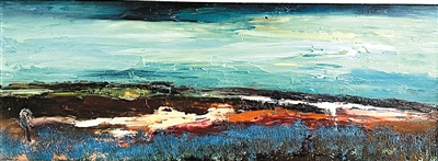 漫步展厅,犹如打开一扇通往奇幻之境的艺术之门。展出的50幅油画作品,均是他极富艺术功力的精品力作。小幅油画,展现的是王荣内心深处的大世界。《故土东韵》《湖光山色》《大地印象》《岁月留痕》《厚土情深》《云壑清心》《故山秋韵》《陇原秋色》《暖日和风》《残雪无语》《寂静高原》《雪域高原》《静观八荒》《守望高原》等作品在王荣的笔下挣脱具象的羁绊,于画布之上以油彩为诗,书写内心的宇宙。观其作品,笔触纵横捭阖,色彩冲撞交融,似是塞外长风呼啸着卷过古城墙,又仿若晨光穿透云冈的薄雾,混沌中绽出明晰,无序里隐现规律。有时,数笔厚重油彩堆叠,仿若恒山峻岭的雄浑气魄;转瞬,轻薄颜料的肆意流淌,又勾勒出文瀛湖的潋滟柔波。王荣用艺术的“炼金术”,将眼中实景提纯为心中幻景。每一幅作品都蕴含着他对生命、时光和美的思索,让观者在欣赏风景的同时也不禁陷入对生活本真的思考。