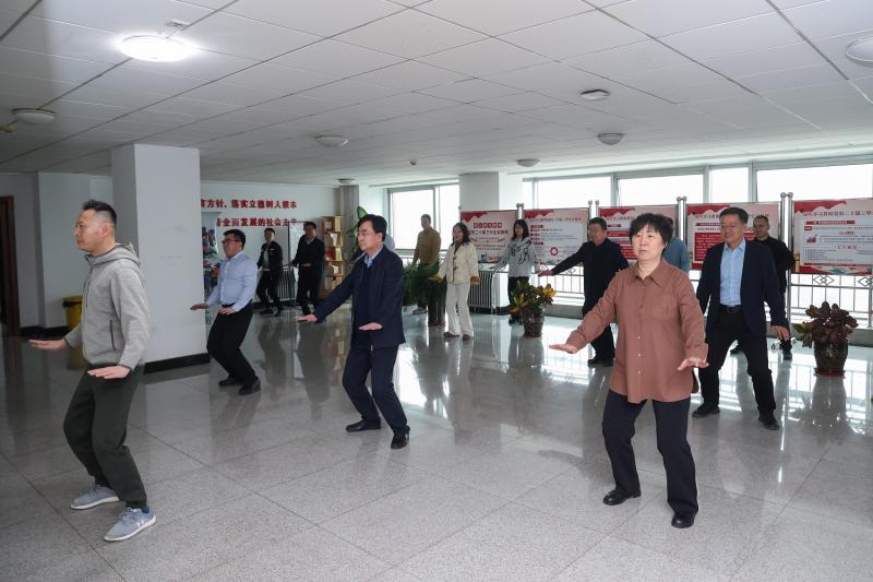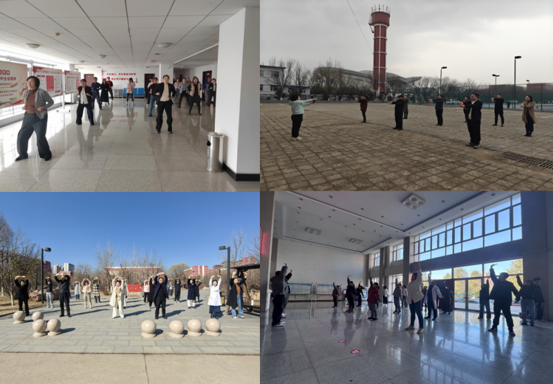 校领导深知教职工身心健康对学校发展的重要性,多次过问活动筹备情况,协调各方资源,为活动顺利开展提供坚实保障。每日上午大课间,阳光洒满校园,行知楼楼道、各学院教学楼前,教职工们身着整齐服装,精神饱满列队。伴随着悠扬古典音乐,在教练带领下,大家缓缓起势,开启“八段锦”练习。