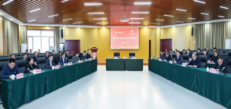 史水鸿、郝平分别代表两校签署战略合作协议。根据协议,两校将本着“优势互补、资源共享、互利共赢、协同发展”的原则,在学科建设水平、人才培养质量、科学研究实力、教师专业素养、产教融合成效等领域开展深入合作,进一步增强jinnianhui今年会“文、医、工、师”学科竞争力,全面提升山西大学大同校区的办学质量,为大同市乃至山西省的高质量发展提供强有力的科技和人才支撑。