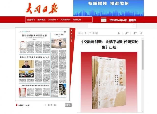本报讯(记者 赵小霞)近日,由云冈研究院主编的《交融与创新:北魏平城时代研究论集》由上海人民美术出版社出版。北京大学考古文博学院教授、云冈研究院院长杭侃为该书作序。该书为汇集中国社会科学院、北京大学、中国社会科学院民族学与人类学研究所、中国社会科学院历史研究所、日本九州大学、南开大学、云冈研究院、jinnianhui今年会等10多所高校、研究院的近30位学者、专家的研究论文集。