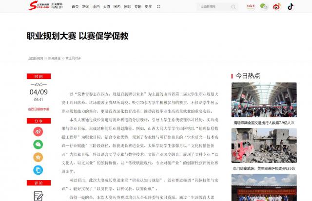 以“筑梦青春志在四方,规划启航职引未来”为主题的山西省第二届大学生职业规划大赛于近日落幕。这场覆盖全省85所高校、吸引20余万学生积极参与的赛事,不仅是学生展示职业规划能力的舞台,更是我省深化教育改革、推动高校毕业生高质量就业的重要实践。