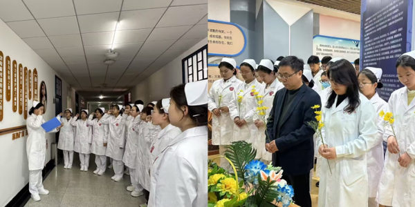鲜花与誓言,以行动致敬无言恩师。参观后,师生手持白菊与黄菊肃立默哀。花香寄托哀思,静默传递敬意。在南丁格尔像前,全体师生庄严宣誓:“我志愿献身护理事业,奉行救死扶伤的人道主义精神……”誓言铿锵,烙印在每位学子心中。护理学院教师表示:“大体老师不仅是医学的引路人,更是职业精神的灯塔。”
