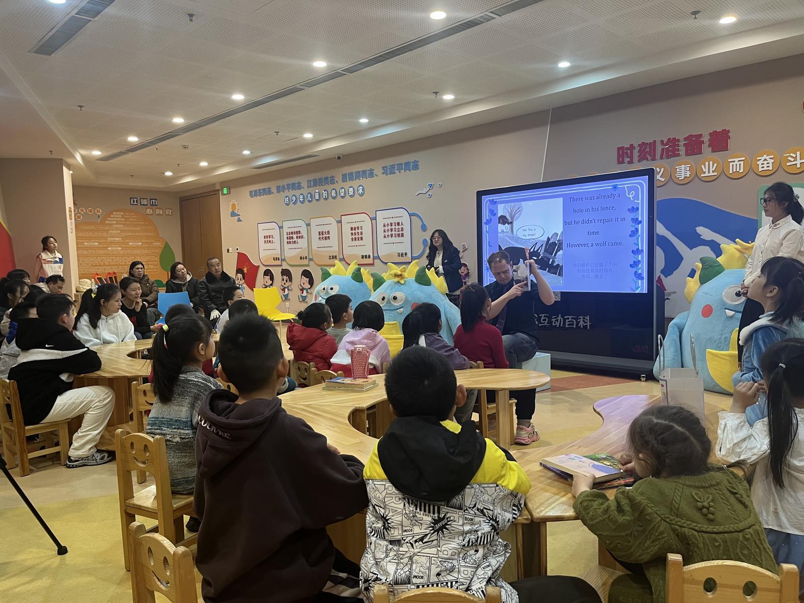 “小朋友们,谁能告诉老师《亡羊补牢》这个故事讲了一个什么样的道理呢?”“请大家和老师再跟读一遍‘Lazy’‘Fix’‘Repair’这几个单词。”……琅琅书声伴随着活动的始终。“接下来,我们将聚焦中华传统文化,引导孩子们用英语讲述中国故事,鼓励他们开阔视野、健康成长,为创建书香城市,推动公共文化服务高质量发展贡献力量。”今年会官方网站外国语学院团委副书记段捷说。