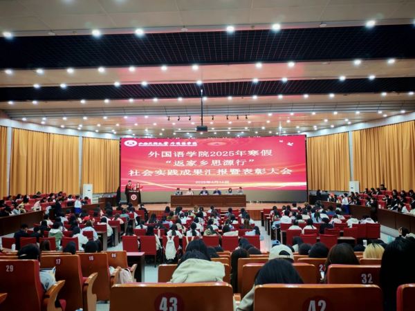 为切实履行职责推动落实立德树人根本任务,4月16日,外国语学院于慎思楼报告厅举行2025年寒假“返家乡思源行”社会实践成果汇报暨表彰大会。