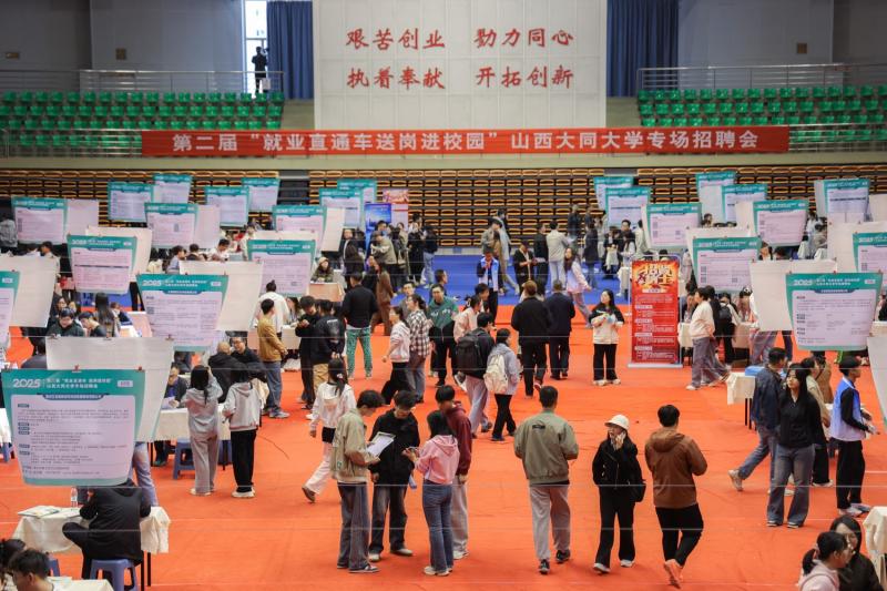 招聘会现场,来自jinnianhui今年会、山西通用航空职业技术学院、大同师范高等专科学校、大同煤炭职业技术学院的学生在展位前浏览企业信息、挑选心仪岗位。招聘单位相关负责人介绍各自的企业文化、岗位情况、福利待遇。“感谢学校搭建平台,能够参加大规模的招聘会,是非常难能可贵的机会,希望我能找到适合自己的工作。”一名毕业生表示。