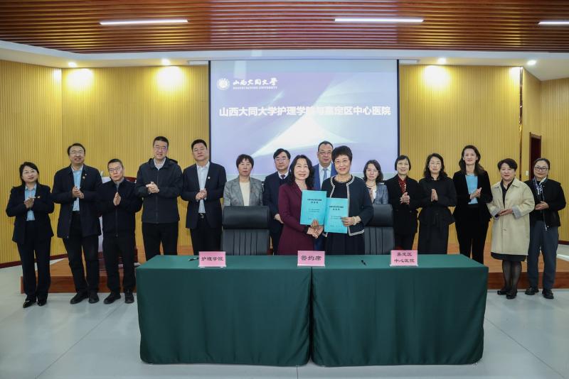 护理学院院长段爱旭与上海市嘉定区中心医院院长戴慧莉代表合作双方签署护理专业实习协议书。