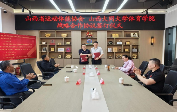 5月16日上午,体育学院与山西省运动体能协会举行了战略合作协议签订仪式。山西省运动体能协会主席沈广晋、副主席牛向明、监事长李亚莉,体育学院院长赵岷、副院长张智等双方代表参加,共同见证这一深化体教融合、助推行业发展的重要时刻。