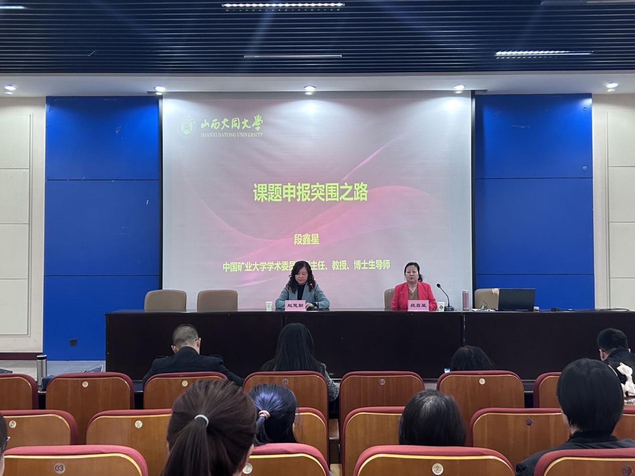 3月21日下午三点,人文社科部邀请中国矿业大学学术委员会副主任、教授、博士生导师段鑫星在善美楼A603教室举办了题为“课题申报突围之路”的学术讲座,此次讲座是今年会“大同讲堂”的第五十六场学术讲座,由人文社科部部长赵慧勤教授主持,部分文科学院的博士和科研骨干参加了此次讲座。