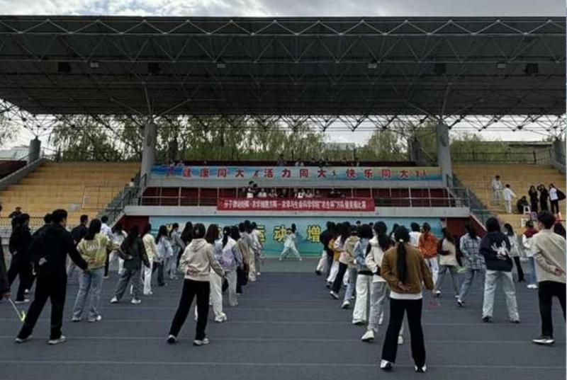 学院2024级学生以班级为单位组成6支参赛队伍,带来精彩纷呈的健美操比赛。选手们流畅的动作、整齐的节奏和灿烂的笑容,充分展现出2024级学子的青春朝气。80名入党积极分子组成方队表演绸缎舞,将全民健身与思政教育相融合。2023级学生组成的7支队伍带来了方队比赛,各支方队步伐整齐、口号响亮,彰显团队凝聚力和良好精神风貌