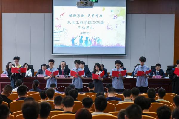 典礼尾声,在校生代表通过歌声向毕业生献礼,传递“机电人”的精神接力。在热烈的掌声中,毕业典礼圆满落幕。毕业生们将带着学院的祝福与嘱托,以“鲲鹏”之姿,开启人生新征程,在未来的广阔天地中奋勇拼搏、追逐梦想。(来源:机电工程学院 责编:安嘉平)