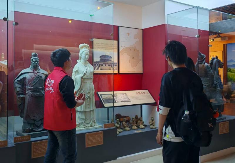 活动现场,同学们驻足于特色展区,通过高清动态影像,直观感受不同朝代石窟建筑构件中鲜卑文化与中原文明的交融之美。一旁“胡风汉韵”服饰复原场景极具吸引力,讲解员以石窟壁画人物形象为引,生动讲述北魏时期服饰、饮食、建筑等方面的文化互鉴故事,让抽象的民族融合历史变得鲜活可感。(来源:医学院 责编:赵鑫)