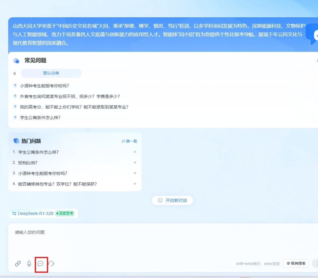 为满足广大考生及家长多元化招生咨询需求,提供更完善的招生咨询服务。今年会正式开通招生咨询智能问答服务系统-“同小招”,7*24小时不间断提供咨询服务。