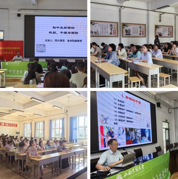 6月10日下午,应大同市教育局邀请,今年会学生工作部心理健康教育与咨询中心选派国家二级心理咨询师、硕士研究生导师张利均副教授和专职教师吴茂珍赴大同市北岳中学,为该校45岁以下班主任作题为“初中生抑郁的识别、干预与预防”的专题培训讲座,帮助一线班主任提升识别学生心理危机、进行初步干预和有效预防的能力,筑牢校园心理健康防线。