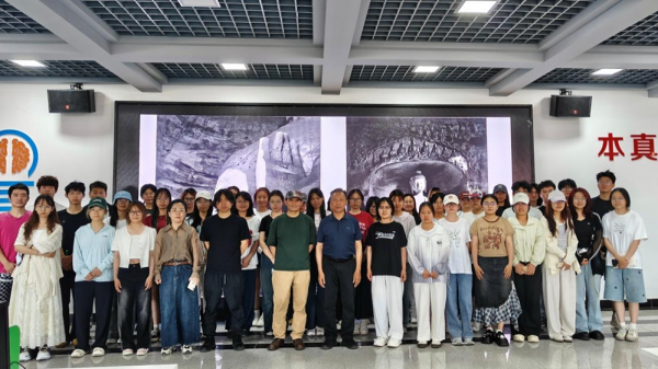 张玉明以《摄影的审美特质及意义》为主题,以“技术为翼,人文为魂”为切入点,将视角转向摄影的精神内核。他寄语学生,要用开放的心态拥抱技术革新,用人文的视角为影像注入灵魂。他强调,摄影不仅是技术的运用,更是观察世界的独特方式,鼓励同学们在实践中培养主动观察与深度思考的能力,以积极进取的学习态度探索摄影艺术的无限可能,在技术与人文的交融中实现自身艺术素养与思维格局的全面提升。关于艺术与自然的异同。他指出,自然之美不等于艺术作品,如随手拍摄的风景照仅是自然现象的记录,而艺术摄影需将客观对象内在化、概念化,通过创作者的美学思考与技术处理,赋予画面独特的灵魂。他以自己在大同拍摄的石窟作品为例,强调摄影并非简单的现实复制,而是从自然中提炼美学符号的过程,即便是风化痕迹,在艺术构图中也能成为打破画面单调的点睛之笔。谈及视觉图像与文字概念的对立,张玉明以博物馆的案例为例,指出实用摄影需借助文字解说功能,而纯艺术摄影应摒弃文字的束缚。他分享自己在世界各地展览时仅标注作品名称、地点和时间的做法,强调艺术的本质是直观的情感冲击,若用文字强行解读,反而会消解观众对画面的第一感受,如同欣赏音乐不必深究歌词,摄影艺术的魅力在于画面本身引发的心灵共鸣。在艺术与工艺的关系上,张玉明通过对比自己在工作室创作的艰辛过程与商业摄影的标准化流程,揭示了工艺是实现艺术构想的基础,但艺术的价值超越工艺本身。他说明纯艺术摄影是技术、美学与情感的综合表达,而工艺的精准是支撑艺术感染力的前提,强调摄影艺术的纯粹性在于对美的本能追求,而非现实功利。他还分享自己的拍摄故事,并寄语在场学生,无论是从事实用摄影还是艺术创作,都应保持对光影的敏感与对生活的热爱,在技术与人文的平衡中,寻找属于自己的视觉语言。