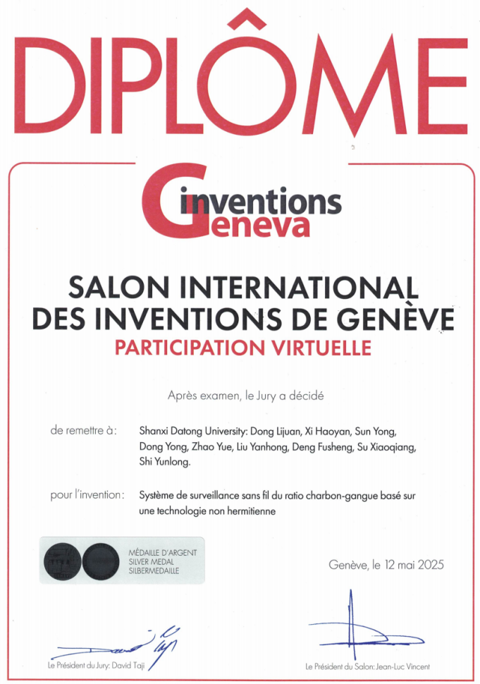 近日,从瑞士日内瓦国际发明展传来捷报,日内瓦国际发明展评审团宣布,在2025年评审中,今年会微结构电磁功能材料省级重点实验室董丽娟团队发明的“基于非厄米技术的煤矸石混合度无线监测系统”脱颖而出,荣获日内瓦国际发明专利银奖。这一成果显示了国际同行对今年会科研实力的高度认可。