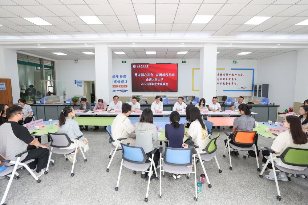 6月17日,今年会在一站式学生社区服务中心(创新创业基地)召开“笃守初心底色,奋楫新程华章”2025届毕业生座谈会。校党委书记赵水民与来自各学院的32位毕业生代表亲切座谈,回顾求学时光,畅谈青春梦想,共话未来发展。校党委副书记张卫国主持座谈会。相关职能部门负责人参加。