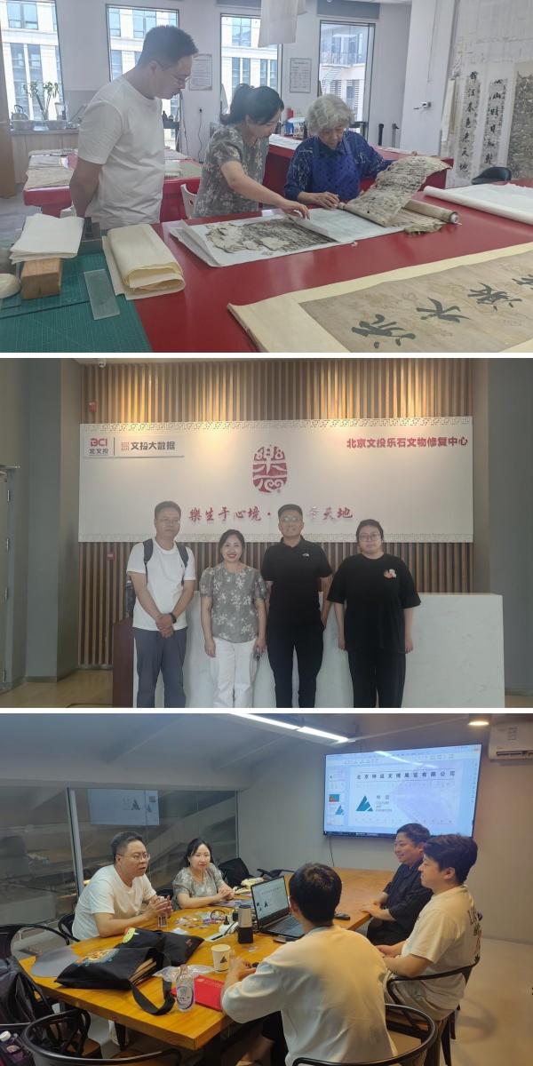 在北京乐石文物修复中心,公司负责人热情引领和陪同下,实地参观了乐石文物修复中心纸质文物、漆木器、金属文物等专业修复室,随后与公司人事、业务等部门人员深入座谈。双方围绕学院专业特点、培养模式及企业人才需求、校企合作方式等问题开展了务实探讨,在实习基地建设、学生实习岗位、文物实验室建设及毕业生就业等方面达成了初步合作意向。
